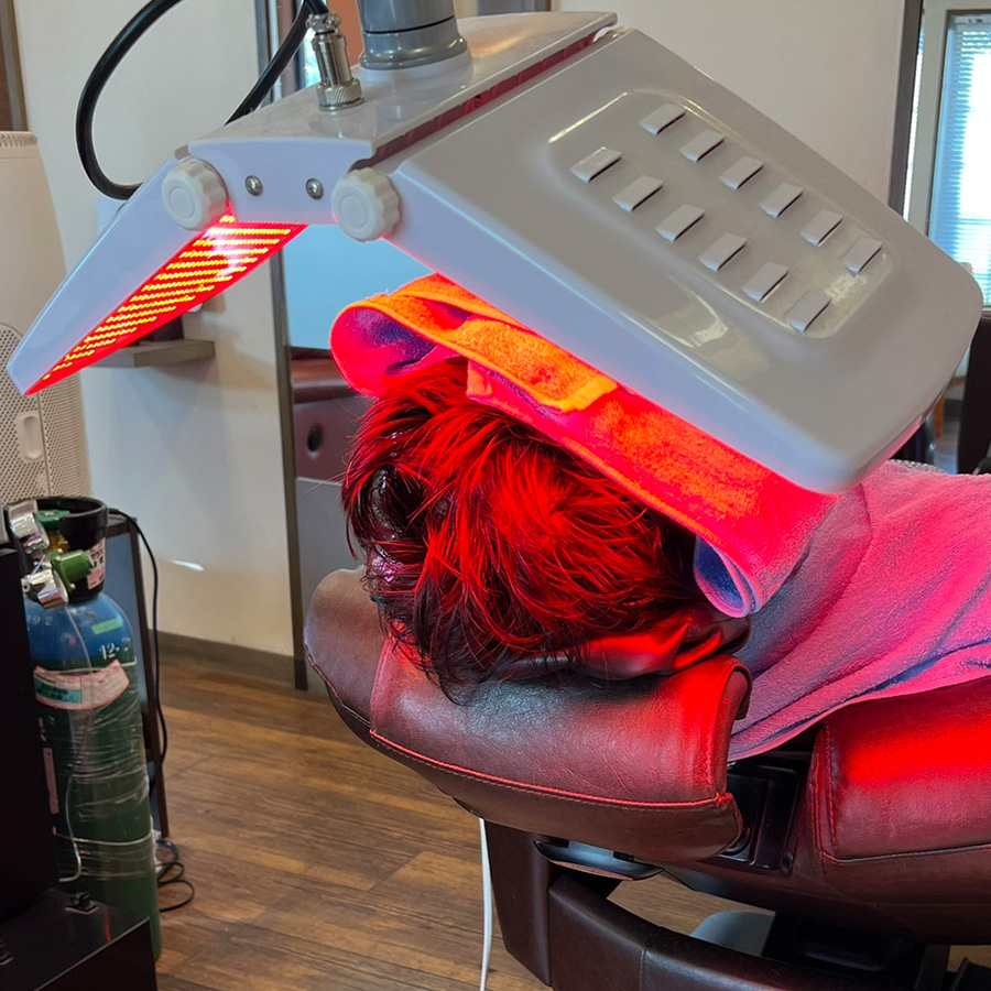 論文に裏付けされた発毛効果が期待できるLEDを照射します。